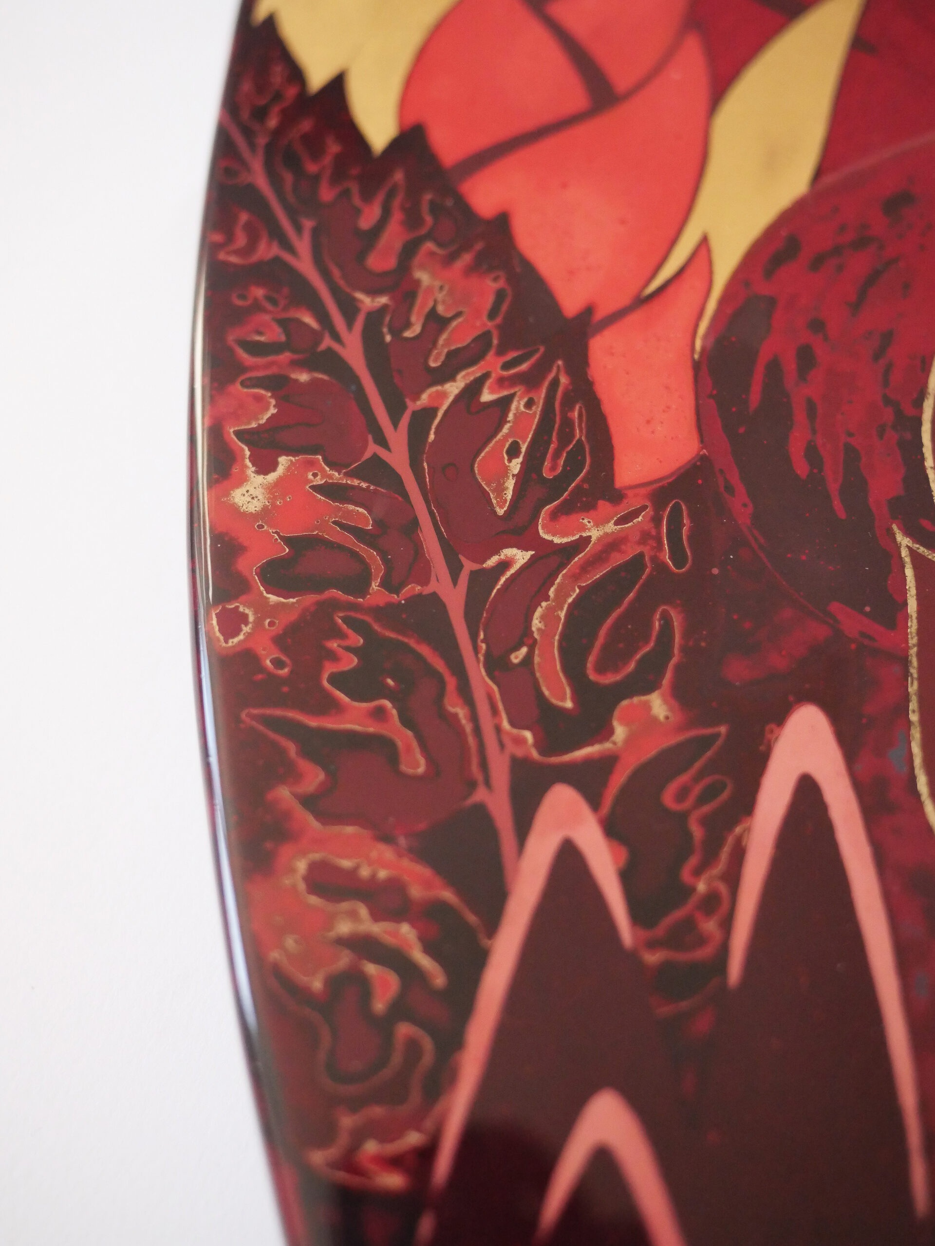 Laque européenne sur bois, incrustation de feuilles d’or